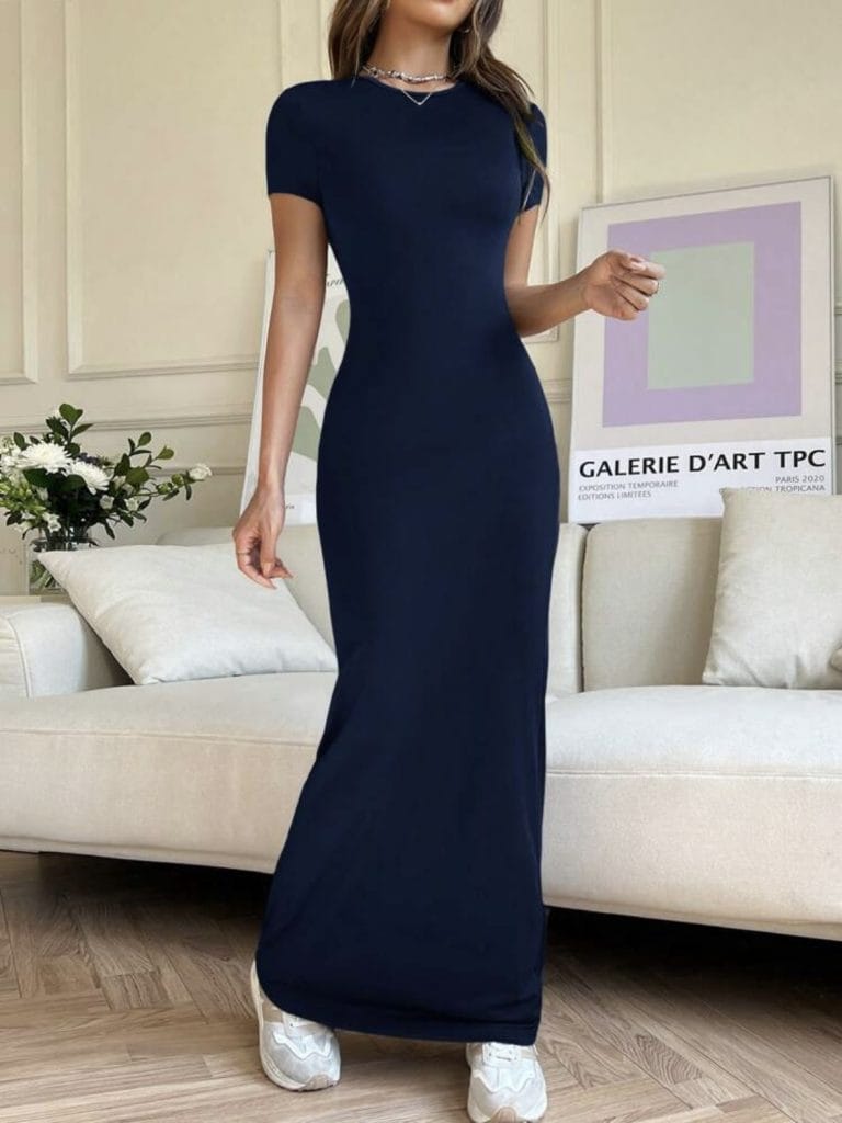 SHEIN EZwear Robe moulante d’été pour femmes, col rond, couleur unie