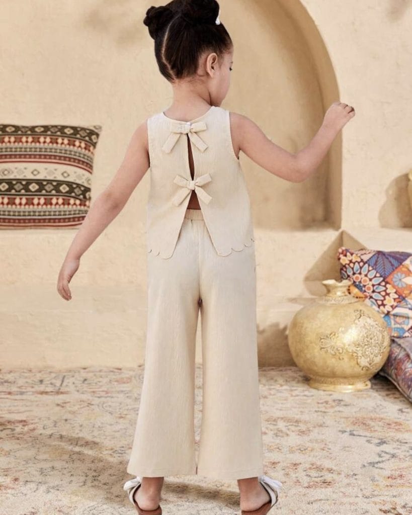 SHEIN 2 pièces/set Top court à col rond de couleur unie tressé et pantalon long ample tressé pour jeune fille