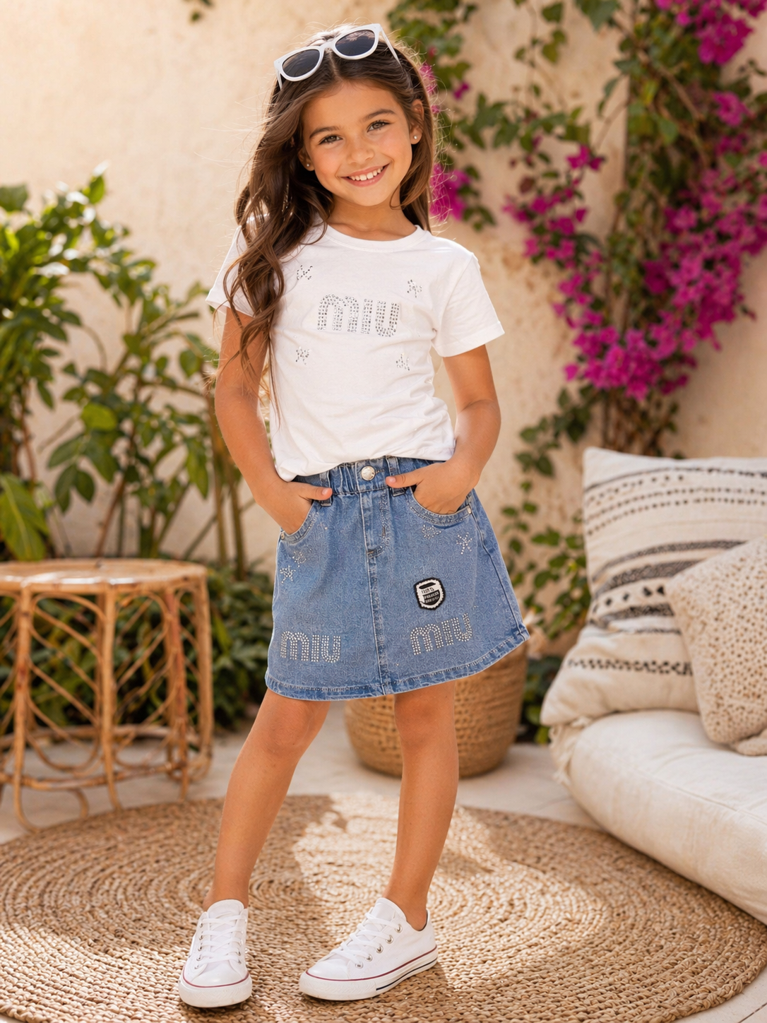 Ensemble fille pull + jupe jean miu miu