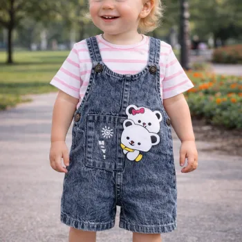 salopette jean ourson avec t-shirt rose