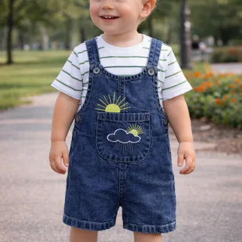 salopette jean foncé soleil avec t-shirt