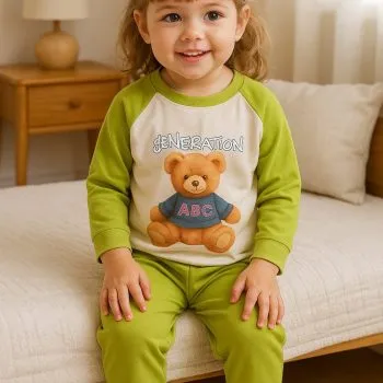 Ensemble de pyjama satiné pour bébé fille avec nœud imprimé et passepoil contrastant