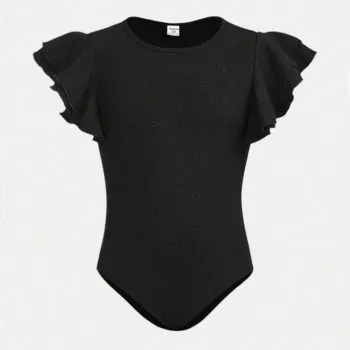 SHEIN Girlism Bodysuit Décontracté À Manches Volantées Courtes Et En Tricot Pour Fille Préadolescente Couleur Solide