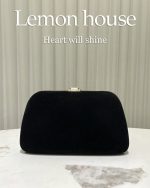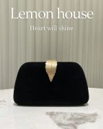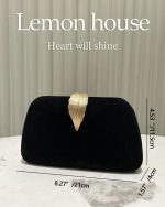 1 pièce Élégante pochette vintage en velours noir avec fermoir en métal en forme de feuille, convient pour les robes de soirée, les banquets, les mariages et les occasions formelles