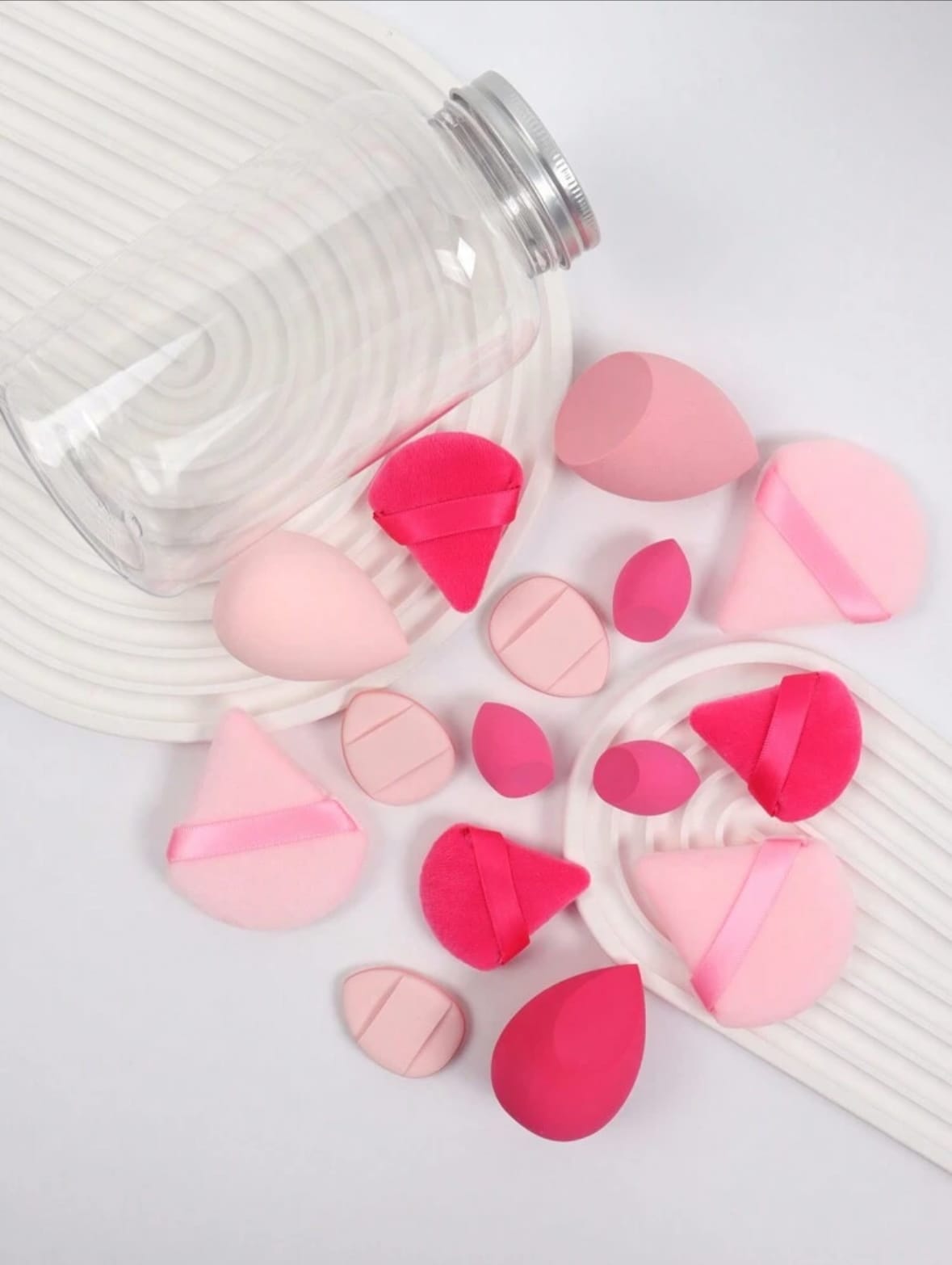 15 pièces Ensemble d’éponges de maquillage avec boîte de rangement