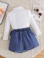 2 pièces ensemble top à manches longues décontracté et jupe en jean pour jeune fille
