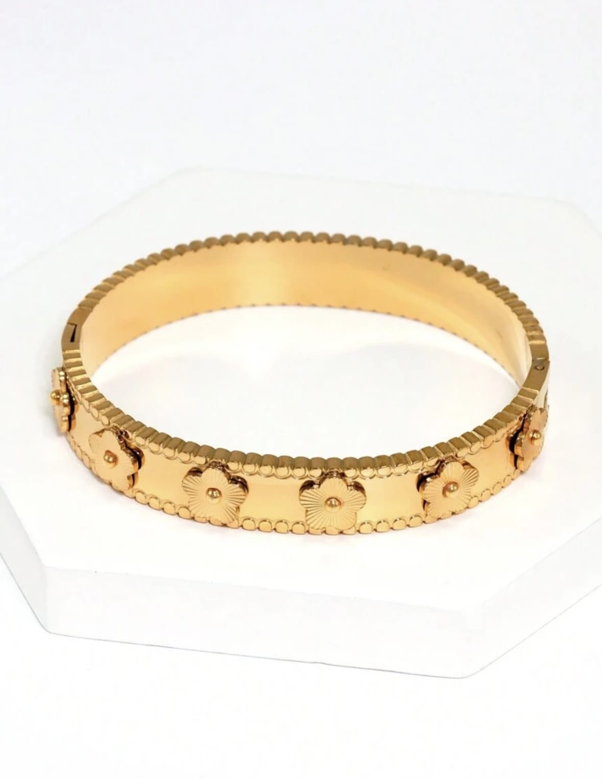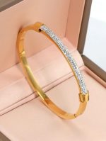 4 pieces Bracelets rigides en acier inoxydable plaqué or 18 carats pour femmes , design de fleur de tréfle à 4 feuilles en zircone cubique brillante , convient pour un port quotidien