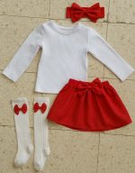 4pcs Ensemble fillette Pull, Jupe , bas et bandeau