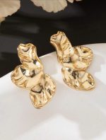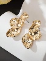 1 paire de boucles d’oreilles clous élégantes à demi-fleurs design métallique brillant, cadeau pour femmes