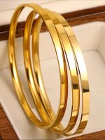 3 pièces/set Bracelet doré minimaliste en acier inoxydable pour femmes, bracelet jonc simple et élégant pour anniversaire, fête, bijoux quotidiens