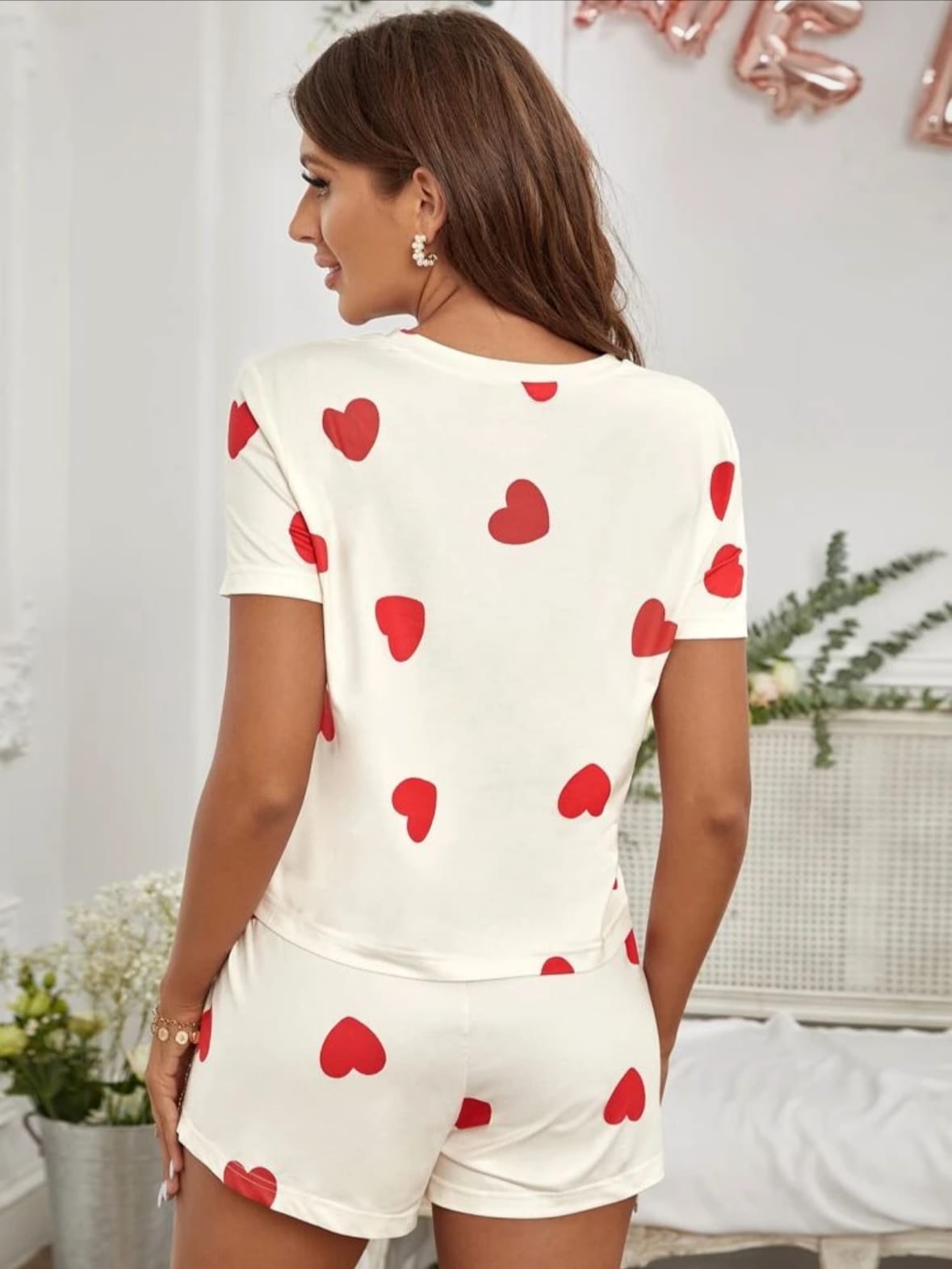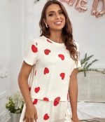 CoupledUp Ensemble pyjama t-shirt imprimé cœur et short femme, ensemble de vêtements de détente, ensemble de vêtements de détente courts pour femmes, ensembles de vêtements de détente pour femmes