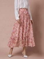 Enchnt Jupe courte casual évasée à imprimé floral tout-sur-tout pour femmes