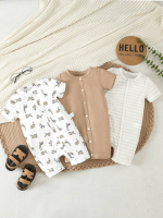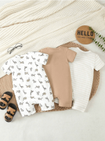 Ensemble de 3 barboteuses décontractées à rayures et imprimées pour nouveau-né garçon, tendance, pour le printemps et l’été