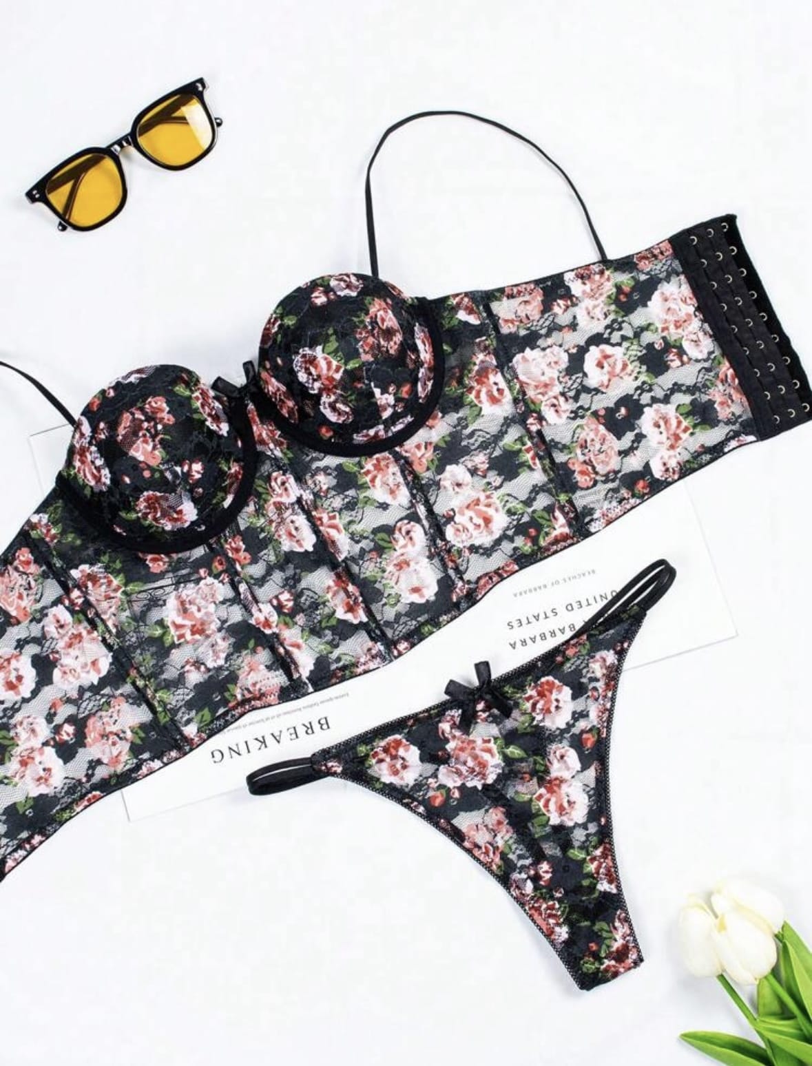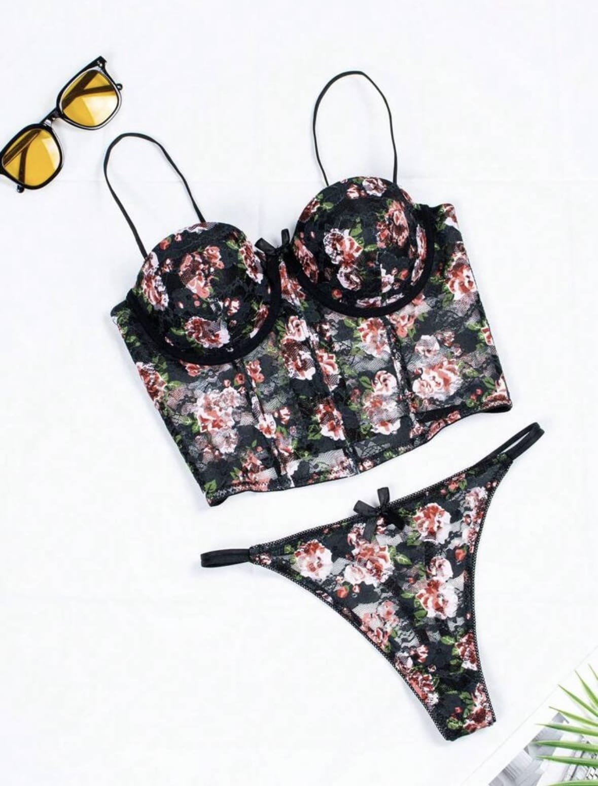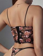 Ensemble soutien-gorge léger à dentelle de fleurs et culotte triangulaire pour femme