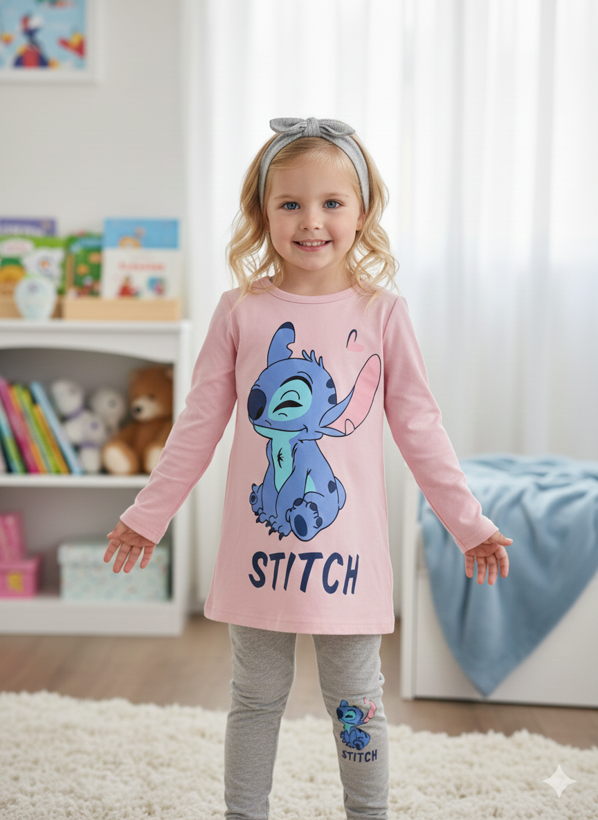 Ensemble Stitch rose pour Fille – Disney Original – 3 Pièces