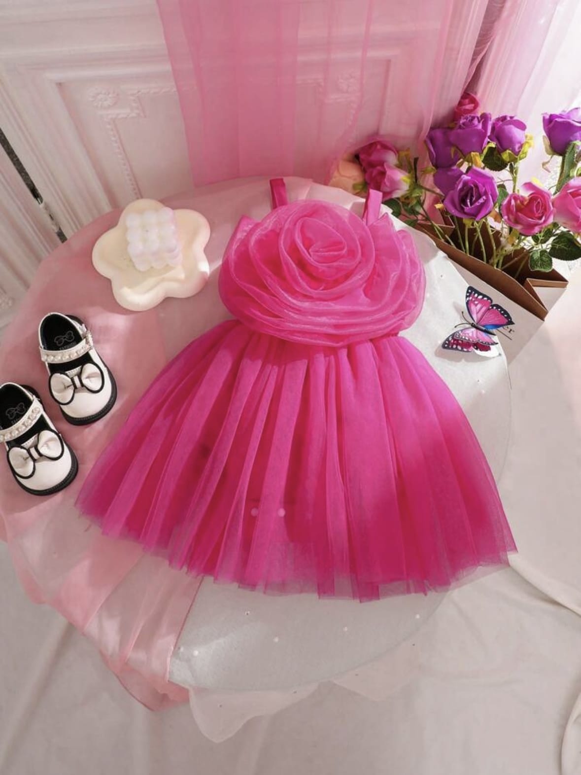Grenouillère sans manches pour bébé fille en patchwork floral unicolore avec empiècement en maille pour l’été