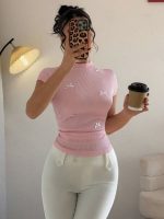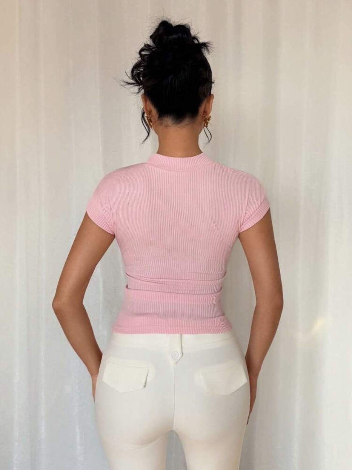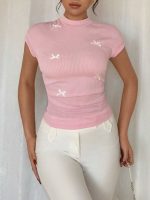 Islaluna Blouse à manches courtes avec nœud plissé à la française, mode et polyvalente