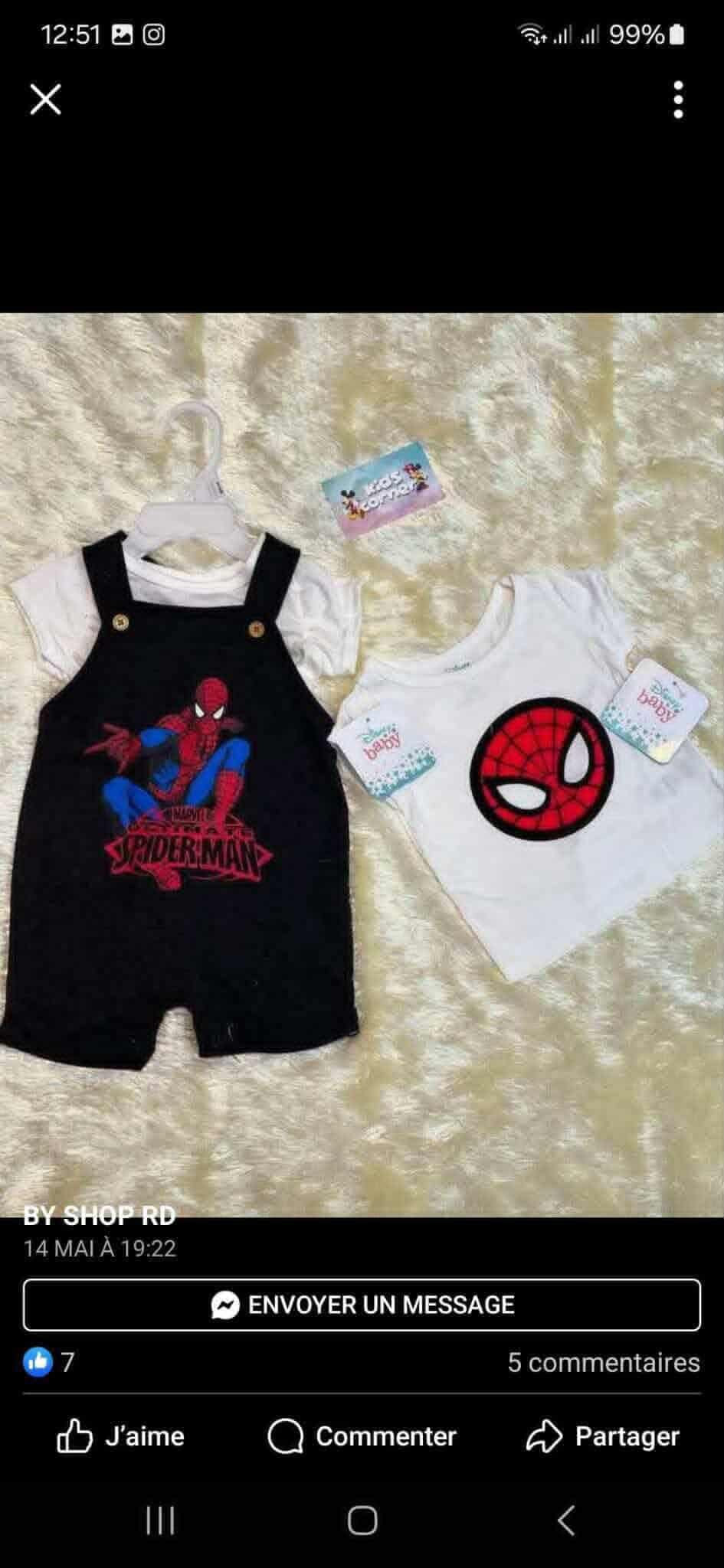 Jolie salopette et t shirt spiderman