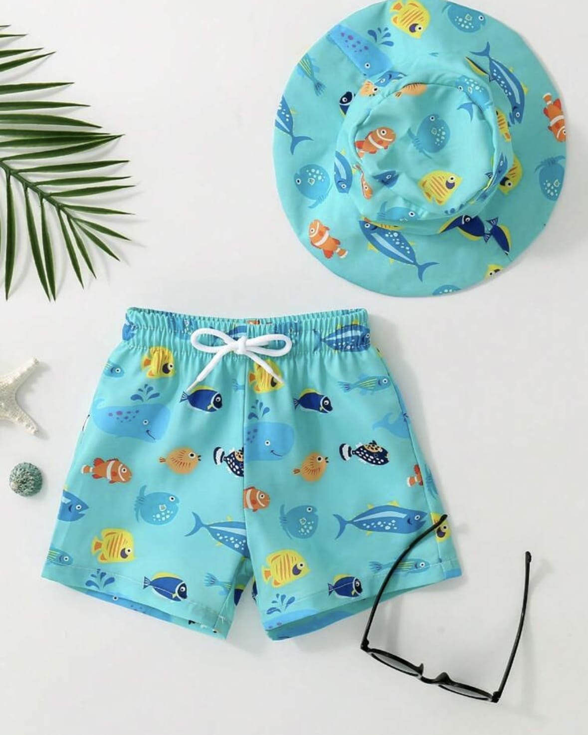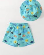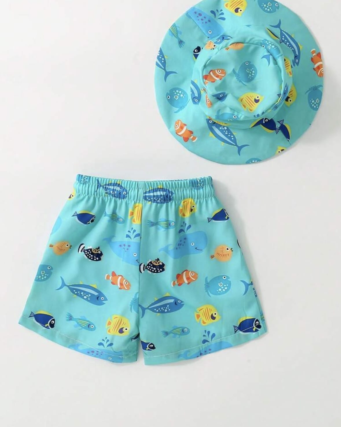 Maillot De Bain Bébé Garçon Avec Motif De Poisson Dessin Animé Et Cordon De Serrage À La Taille