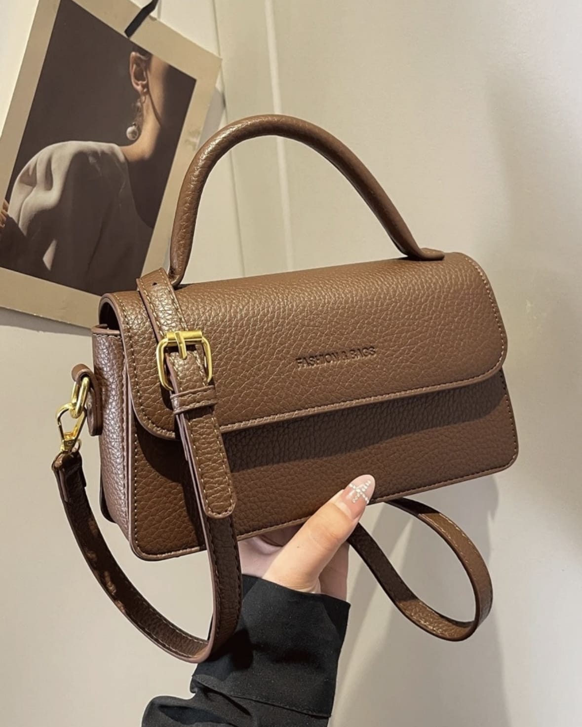 Mode classique Joker Couleur unie Tissu en PU imperméable, Décoration de motif de lettre, Sac à main élégant rétro, Sac carré, Peut être porté en bandoulière, Convient pour une utilisation lors du Nouvel An, des voyages, des achats et des cadeaux de vacances.