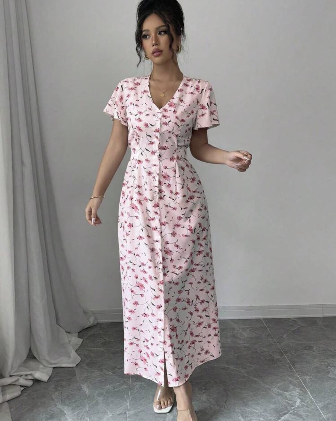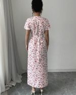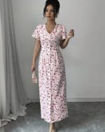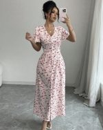 Rafferiza Nouvelle robe chemise européenne et américaine à col V décontractée avec lien à la taille à motif floral