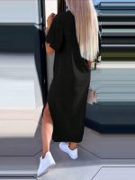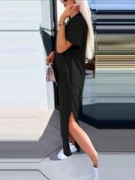 INAWLY Robe courte minimaliste et casual à col rond et manches courtes de couleur unie pour femme.