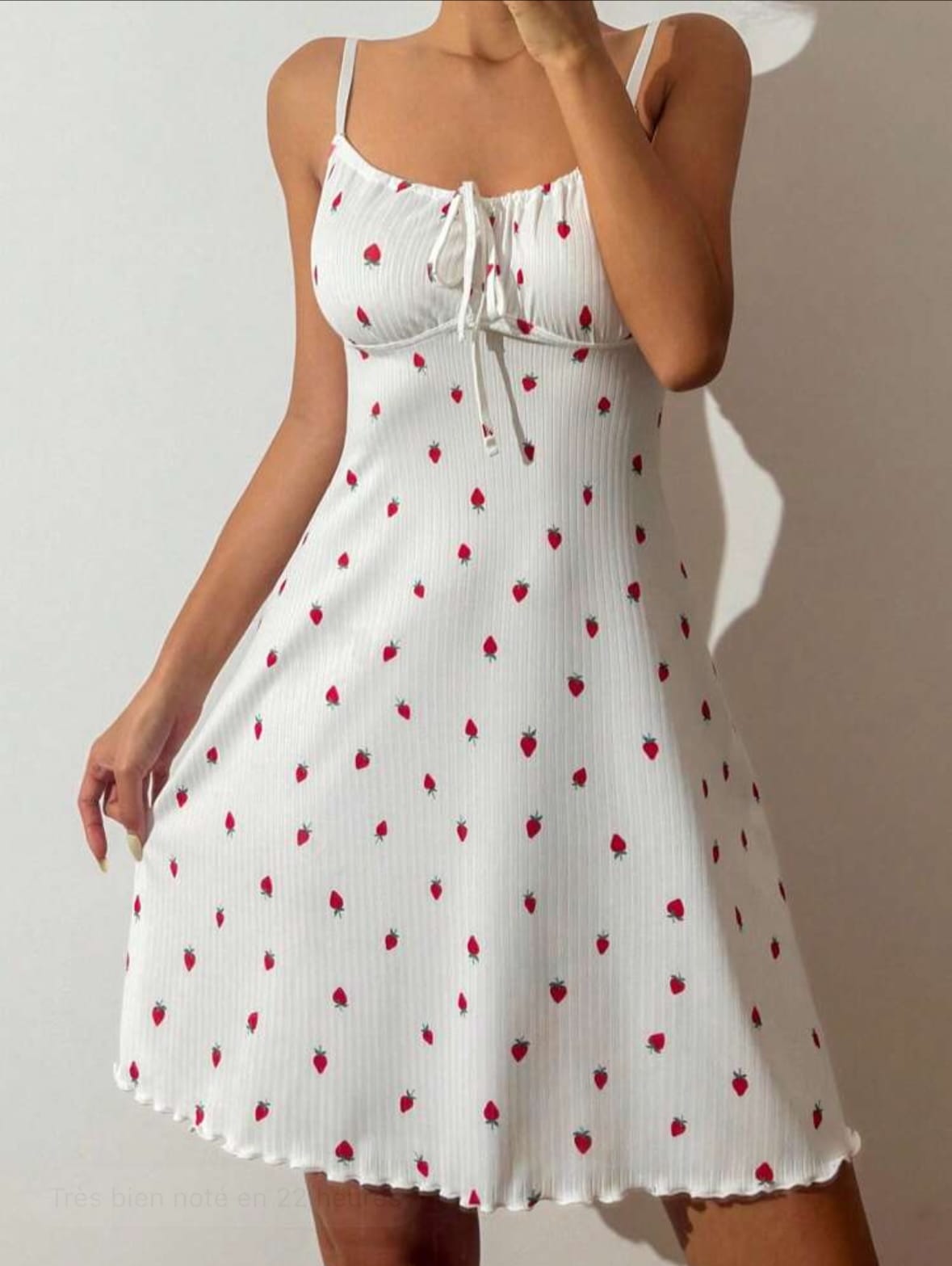 CottageSlumber Robe de pyjama nuisette imprimée de fraises pour femmes