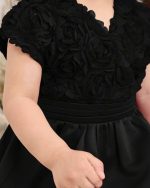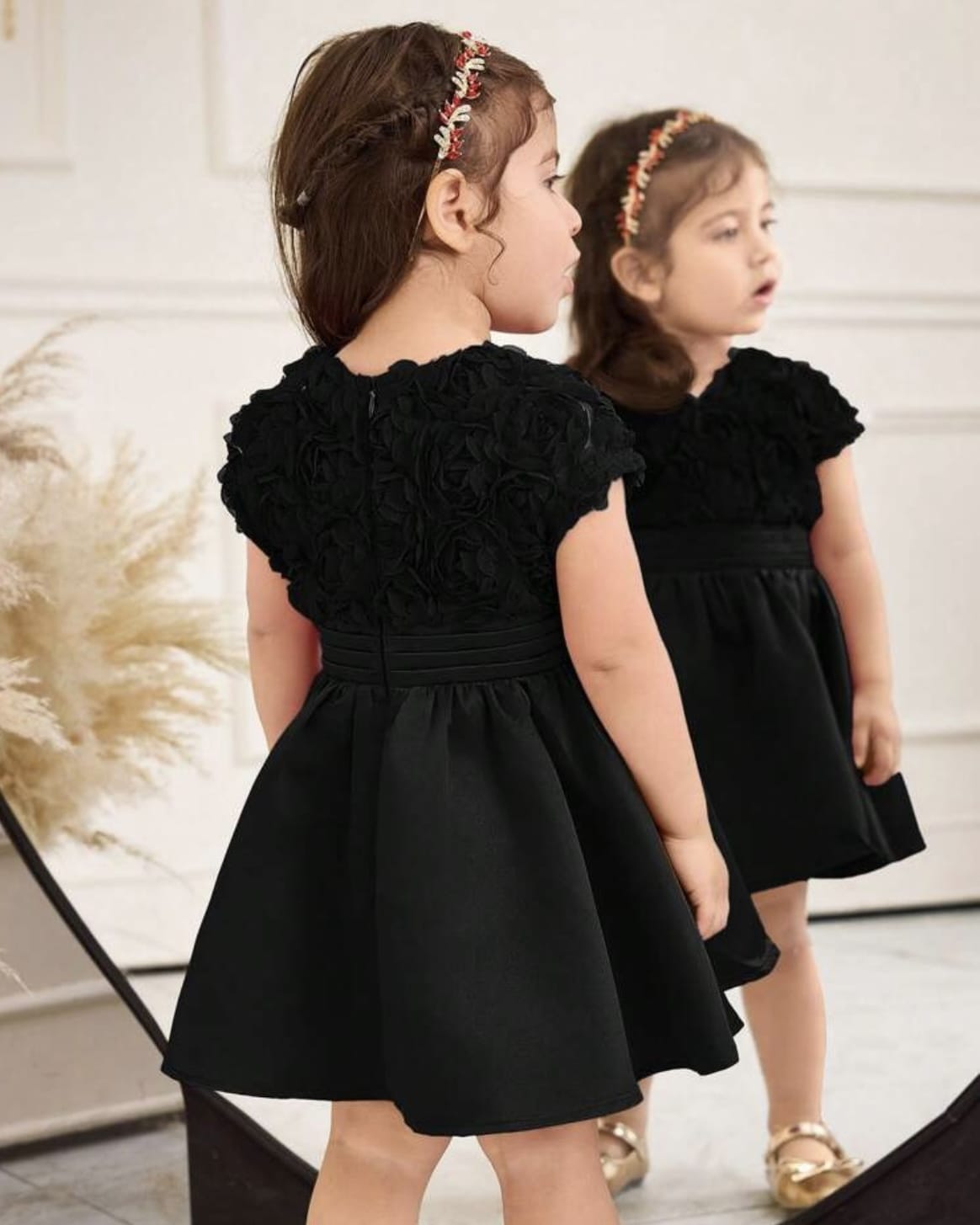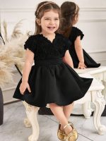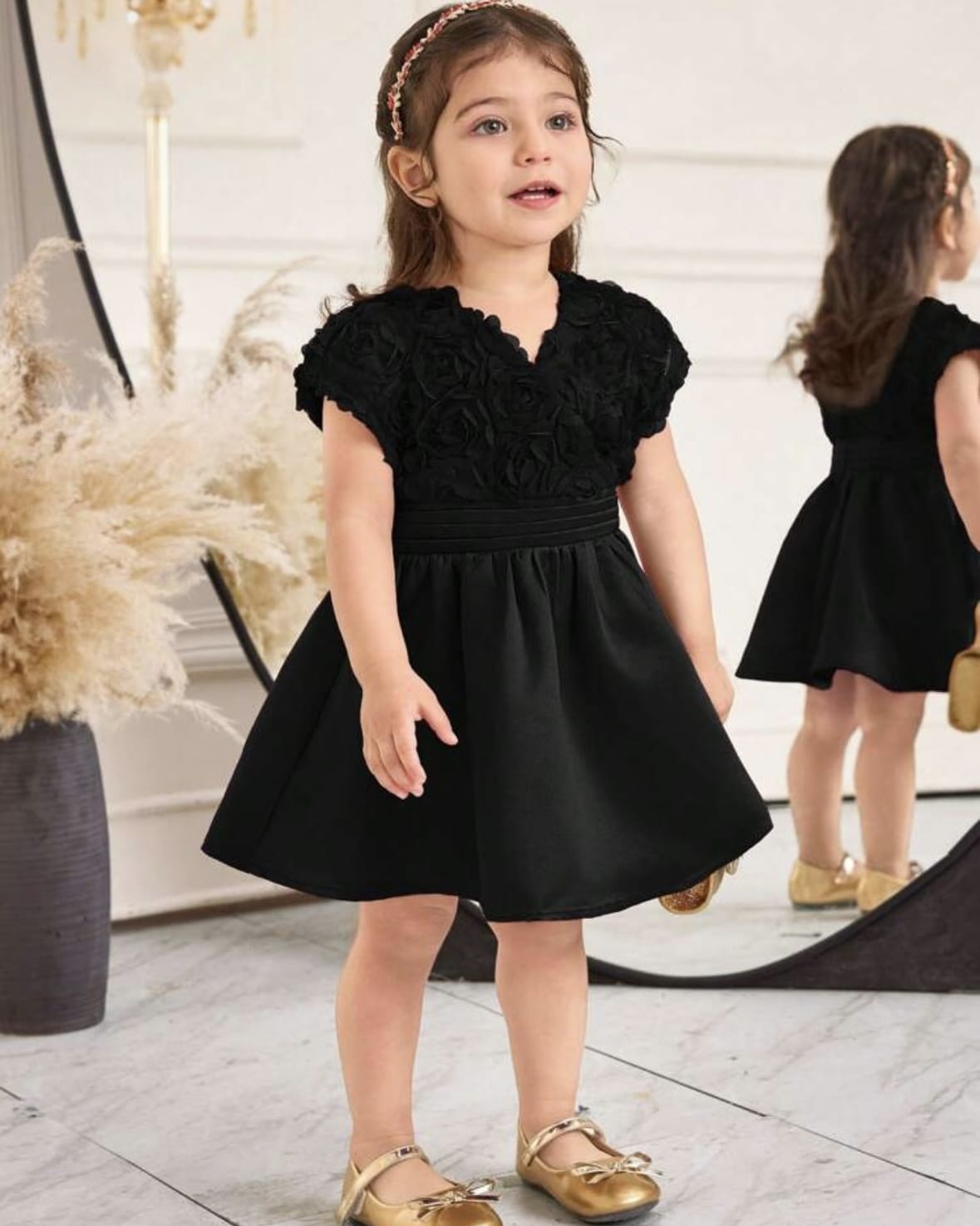 Robe mi-longue élégante ajustée mignonne style palais vintage pour bébé fille, col en V, manches courtes