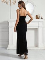 SHEIN Belle Robe À Fines Brides À Perles Sirène En Velours