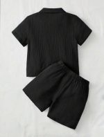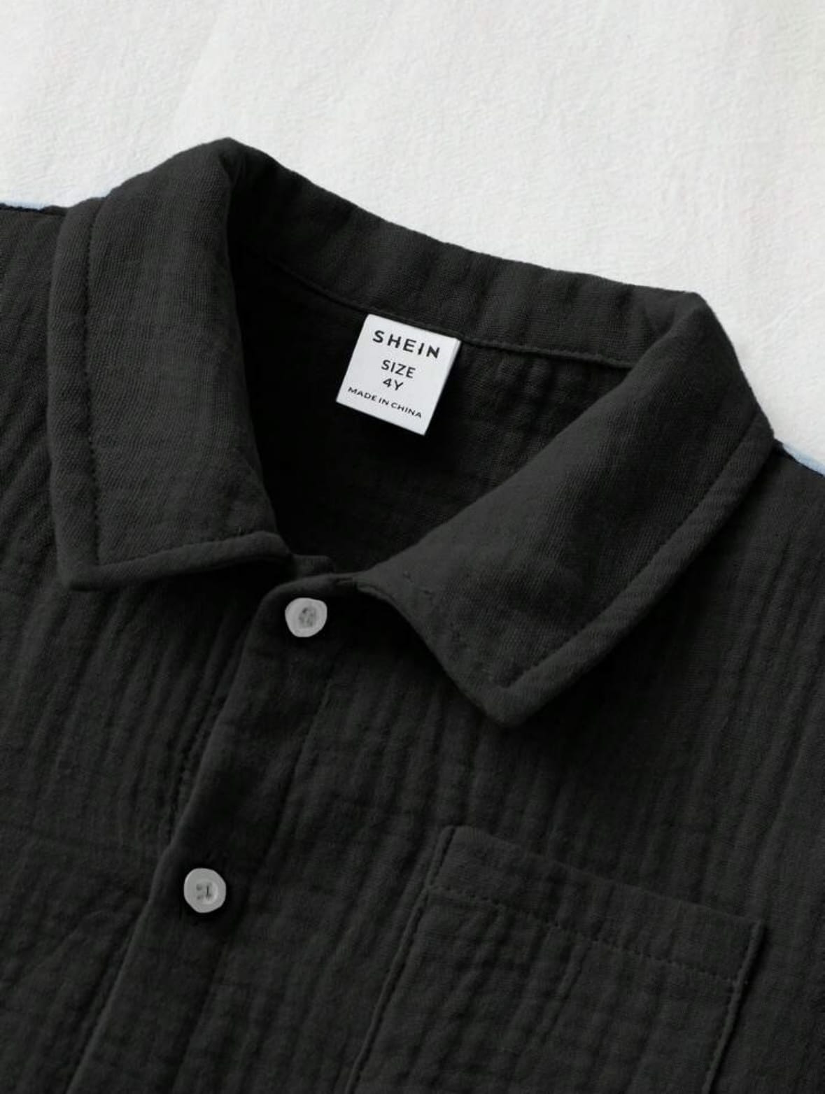 SHEIN Ensemble chemise et short unicolore pour jeune garçon avec poche appliquée, tenue simple pour pré-adolescents
