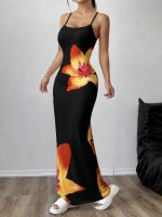 SHEIN EZwear Robe longue aux fines bretelles à imprimé floral élégante pour femme, idéale pour les vacances d’été