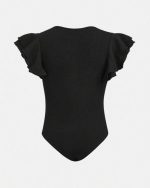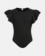 SHEIN Girlism Bodysuit Décontracté À Manches Volantées Courtes Et En Tricot Pour Fille Préadolescente Couleur Solide