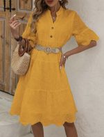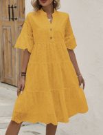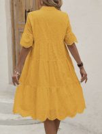 SHEIN LUNE Robe Évasée Décontractée D’été Évidée Avec Broderie, Encolure En V, Ourlet À Volants Pour Sortir