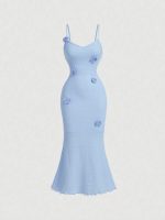 SHEIN MOD Robe de cocktail à fleurs d’abricot décorée pour femmes, robe de fête, robe de femme, robe d’été, robe moulante, robe d’été
