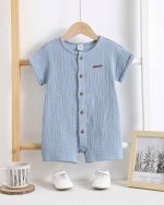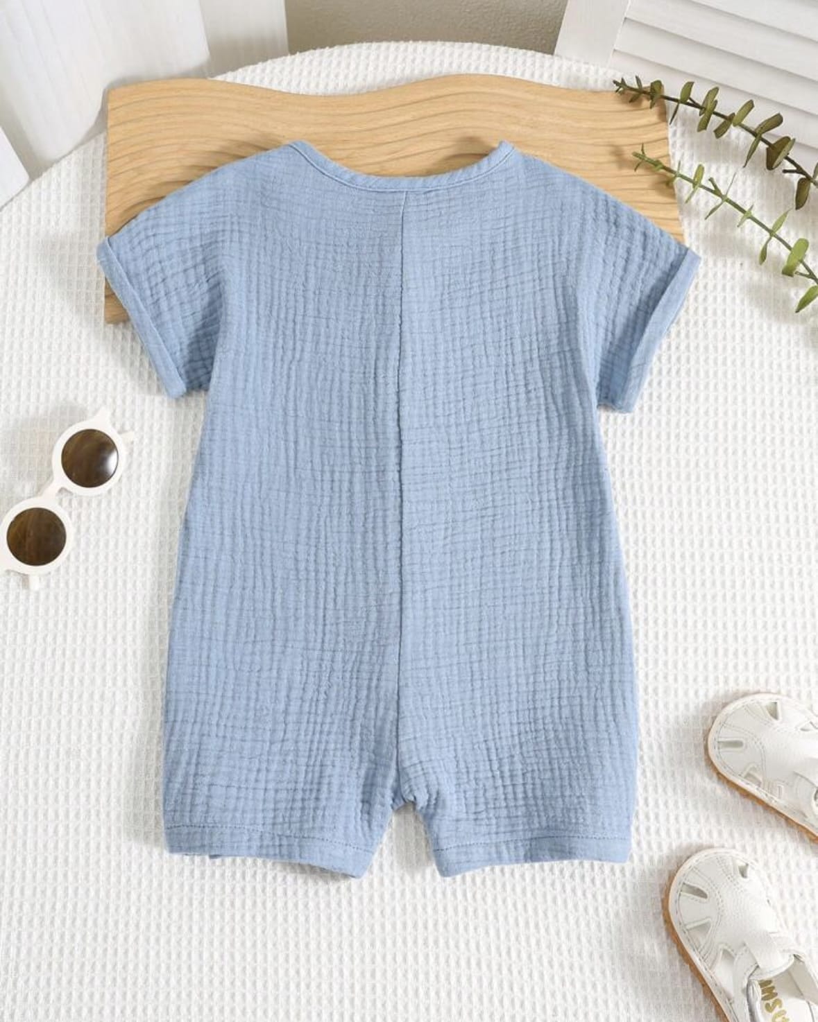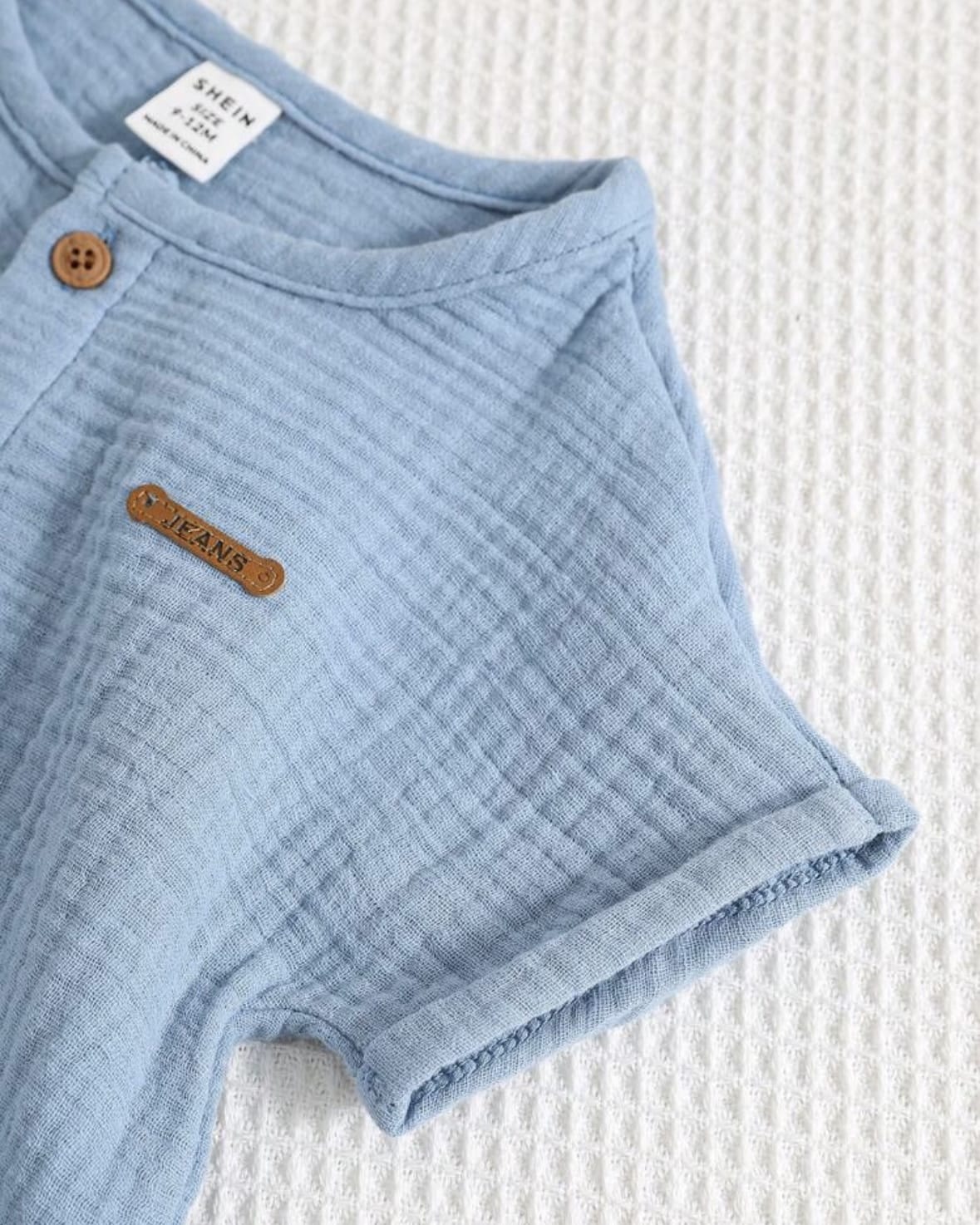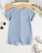 SHEIN Nouveau-né bébé garçon mignon, ensemble casual couleur unie, body à manches courtes et short, été