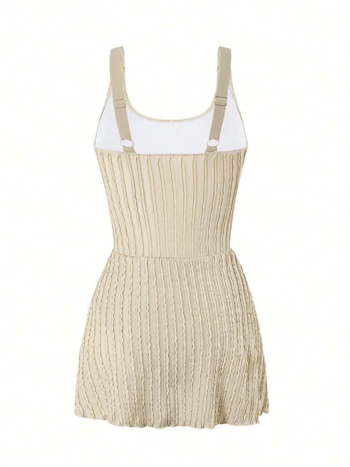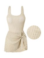 SHEIN Robe maillot de bain une pièce en tissu spécial de couleur unie, style décontracté plage et villégiature, pour l’été