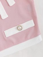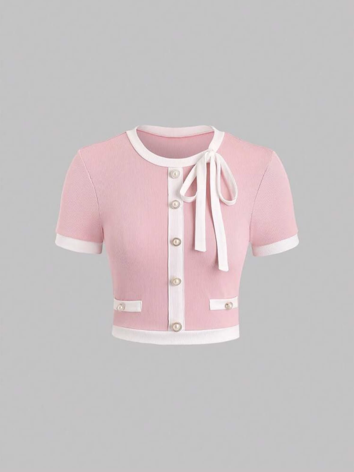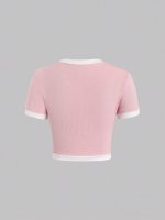 Sweetra T-shirt moulant avec détails de bouton de reliure de contraste pour les t-shirts graphiques d’été décontractés pour femmes